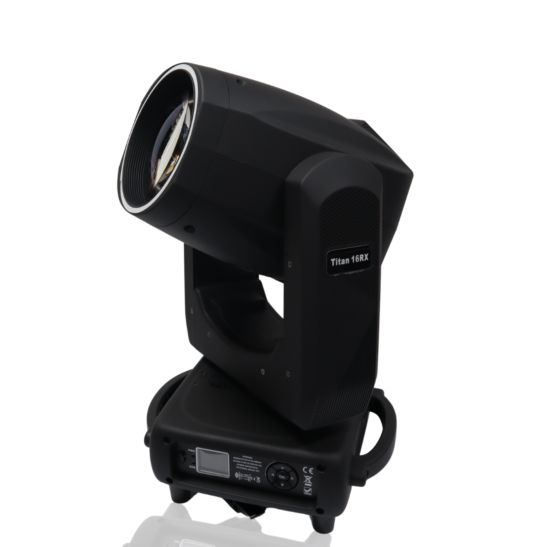 Elevate your light shows with the AUVI Titan 16Rx, a medium-sized moving head light packed with professional features and a stunning LED Ring Effect that delivers next-level visual impact. Perfect for DJs, clubs, live events, and production setups that need brightness, flexibility, and standout design.